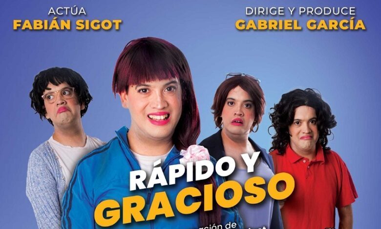 RAPIDO Y GRACIOSO es un show unipersonal lleno de humor con un desfile de increíbles personajes como son La Caro, Ines, Lorena y Viviana interpretados por Fabian Sigot y con la dirección y producción de Gabriel García.